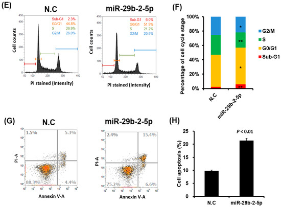 3.6. MiR-29b-2-5p Expression Suppressed Colon Cancer Cell Growth and Induced Apoptosis