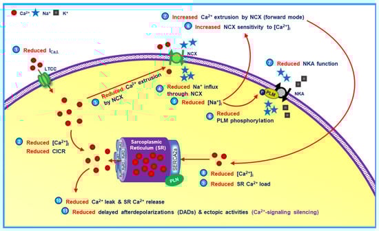 - Kaplan, A.D.; Joca, H.C.; Boyman, L.; Greiser, M. Calcium Signaling Silencing in Atrial Fibrillation: Implications for Atrial Sodium Homeostasis. Int. J. Mol. Sci. 2021, 22, 513. [Google Scholar] [CrossRef] [PubMed]