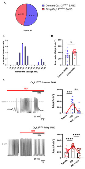4.1. Cav1.3 Channels Are Critical β-Adrenergic Effectors in Maintaining Firing in Dormant SANC