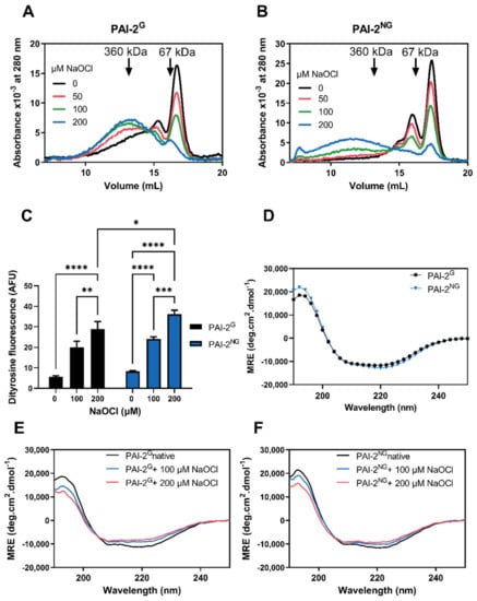 - Wyatt, A.R.; Kumita, J.R.; Mifsud, R.W.; Gooden, C.A.; Wilson, M.R.; Dobson, C.M. Hypochlorite-induced structural modifications enhance the chaperone activity of human alpha2-macroglobulin. Proc. Natl. Acad. Sci. USA 2014, 111, E2081–E2090. [Google Scholar] [CrossRef]