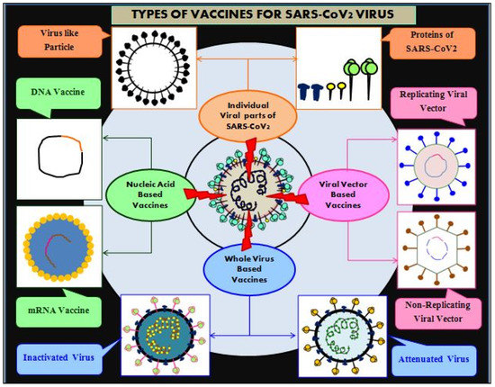 As per the currently available data, 14 different vaccines against SARS-CoV-2 have been known to clear phase IIIclinical trials and be approved for worldwide massive and accelerated immunization campaigns to mitigate COVID-19viaEUA [40,129,130]. This is more likely to combat the mounting COVID-19 cases and deaths worldwideurgently. COVID-19 vaccine candidates developed come under different types of vaccine platforms (Figure 9):