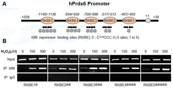 - Prdx6 promoter, RKBE1 mutant (RKBE1-mut; GC to TT, −407 to −403):
