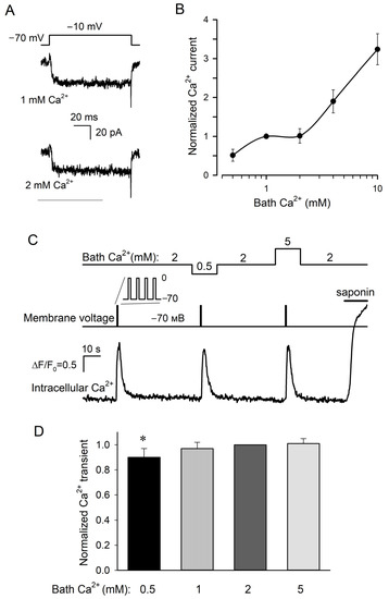 3.1. Influence of Extracellular Ca2+ on VG Ca2+ Currents and Related Ca2+ Transients