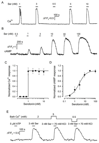 3.2.2. Effects of Bath Ca2+ on Serotonin Release