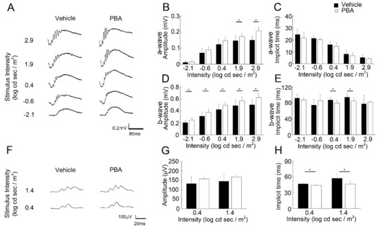 3.2. PBA Preserved Visual Function in the P23H RP Models
