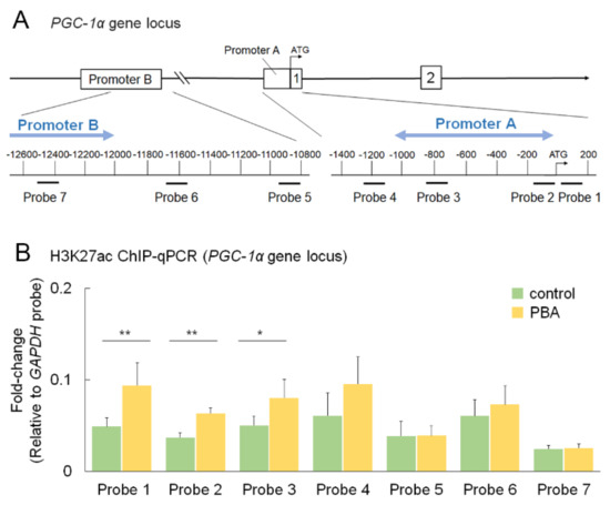 3.6. PBA Increased Histone Acetylation of the PGC-1α Promoter