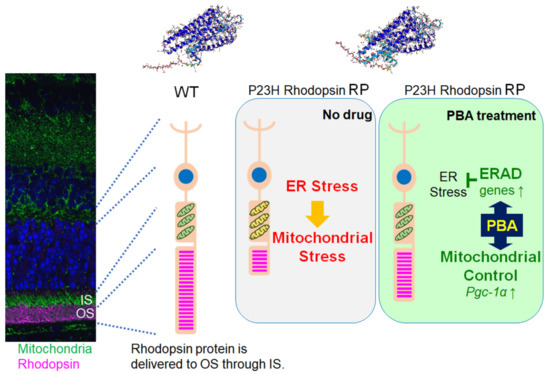 - Gorbatyuk, M.S.; Knox, T.; LaVail, M.M.; Gorbatyuk, O.S.; Noorwez, S.M.; Hauswirth, W.W.; Lin, J.H.; Muzyczka, N.; Lewin, A.S. Restoration of visual function in P23H rhodopsin transgenic rats by gene delivery of BiP/Grp78. Proc. Natl. Acad. Sci. USA 2010, 107, 5961–5966. [Google Scholar] [CrossRef] [Green Version]