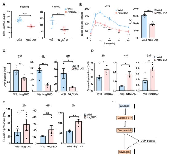 3.3. Glycogen Synthesis Is Not Hyper-Activated in Ndrg3 LKO Mice