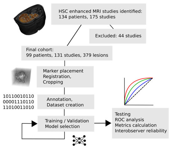 15]. In the present study, we aim to demonstrate that 3D CNNs can be applied for comprehensive evaluation and visualization of diagnostic image features in the same three types of FLLs in HSC MRI. We also investigate the consistency between the detected image features and the predicted diagnosis in each class, and the agreement between the DLM and radiologists.