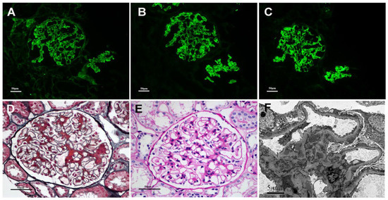 - Miyazaki, K.; Miyazaki, M.; Tsurutani, H.; Sasaki, O.; Furusu, A.; Taguchi, T.; Harada, T.; Ozono, Y.; Kohno, S. Development of IgA nephropathy 14 years after diagnosis of membranous nephropathy. Nephrol. Dial. Transplant 2002, 17, 140–143. [Google Scholar] [CrossRef][Green Version]