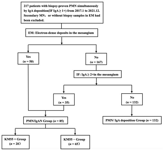 In conclusion, our study suggested that when glomerular KM55 staining was positive, this special coexisting PMN/IgAN disorder was prone to have more characteristics of IgAN besides PMN, and may predict poorer prognosis, while the mechanism requires further investigation. Our findings may be of importance for judgement and prognosis for this special type of PMN (coexisting PMN and IgAN).