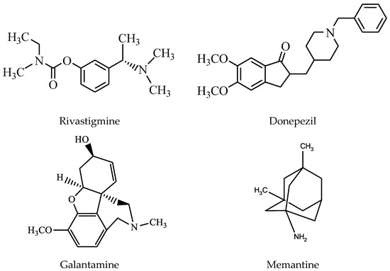 - Kumar, A.; Gupta, V.; Sharma, S. Donepezil. In StatPearls; StatPearls Publishing Copyright © 2022; StatPearls Publishing LLC.: Treasure Island, FL, USA, 2022. [Google Scholar]