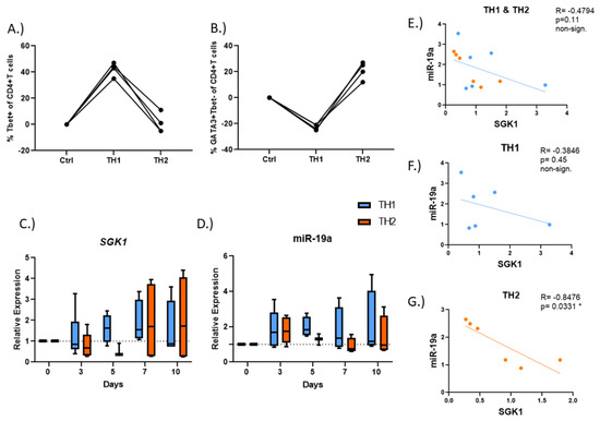 3.5. SGK1 and miR-19a Levels Are Significantly Correlated in Early TH2 Cell Polarity