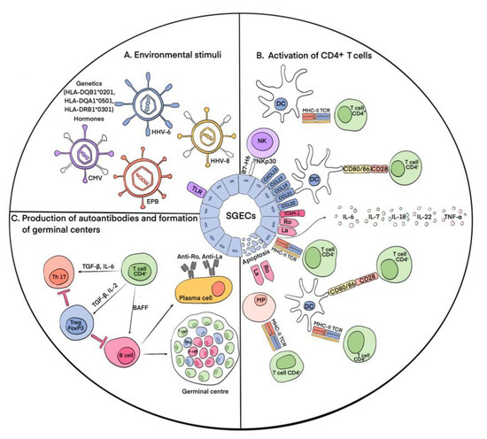 - Liu, Z.; Chu, A. Sjögren’s Syndrome and Viral Infections. Rheumatol. Ther. 2021, 8, 1051–1059. [Google Scholar] [CrossRef] [PubMed]