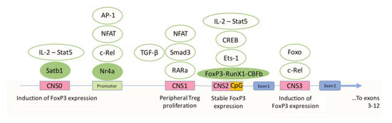 - Zheng, Y.; Josefowicz, S.; Chaudhry, A.; Peng, X.P.; Forbush, K.; Rudensky, A.Y. Role of Conserved Non-Coding DNA Elements in the Foxp3 Gene in Regulatory T-Cell Fate. Nature 2010, 463, 808. [Google Scholar] [CrossRef] [PubMed]