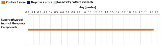 IPA-predicted activation of the canonical pathway Superpathway of Inositol Compounds in the heart tissues of ZDF-F ats treated with NP-6A4IPA-predicted Z score: 2.234. The orange color indicates the positive Z score and activation of the pathway.