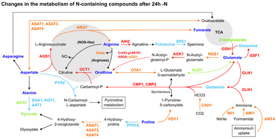 4.1. General Role of Arg Metabolism as Priming and Metabolic Switch in Nitrogen Deprivation
