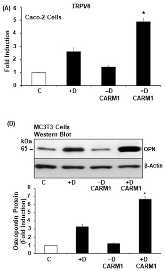 3.5. CARM1 Also Enhances 1,25(OH)2D3 Induction of Trpv6 and Osteopontin