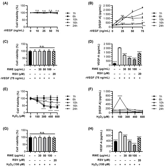 3.1. RWE Prevents VEGF-A Production Induced by rVEGF and H2O2 in ARPE-19 Cells
