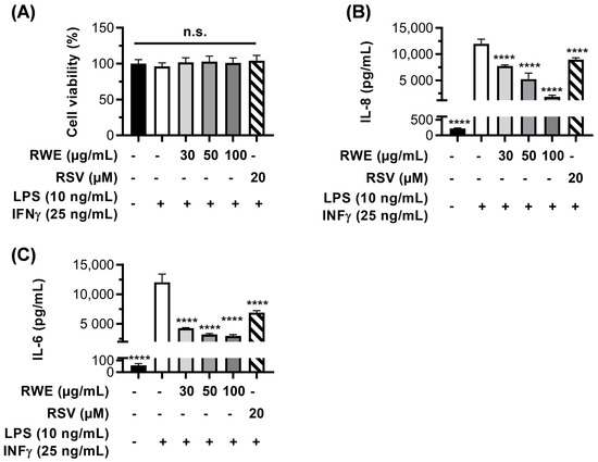 3.5. RWE Prevents H2O2- and LPS/IFN-γ-Induced Inflammation in RPE Cells and Macrophages