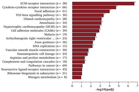 Top KEGG enrichment pathways of differentially expressed genes (DEGs) in endothelial cells generated from MSCs. * Indicated significantly enriched KEGG pathway terms found in induced endothelial cells compared with MSCs. Reproduced with permission from Wang, European Journal of Vascular and Endovascular Surgery; published by Elsevier, 2020 [63].