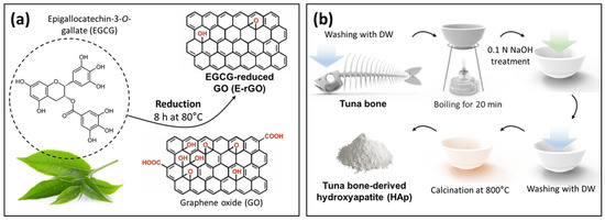 2.1.1. Preparation of E-rGO and Tuna-Bone-Derived HAp
