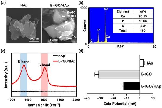 2.2.2. Physicochemical Characterizations of E-rGO/HAp Composites