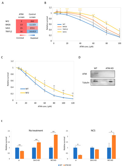 3.3. Genetic Validation of BAG6, SAV1 and NF2 as Synthetic Viable in ATM Deficiency