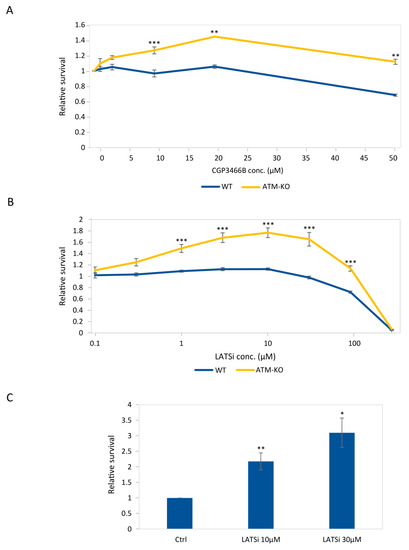 3.2. Perturbation of the Hippo Signaling Pathway Promotes Cell Survival upon ATM Inhibition