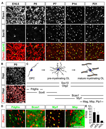 3.1. Pbrm1 Is Present in Oligodendroglial Cells throughout Their Development