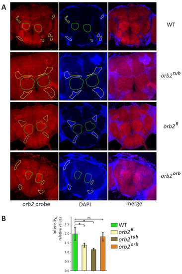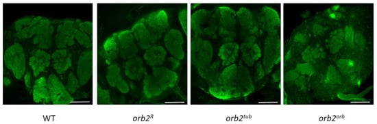 3.5. 3′UTR of orb2 Gene Is Essential for Orb2 Protein Distribution