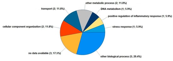 According to the GO slim categories for the biological processes annotation, most of the eight proteins that were significantly regulated by LPC 16:0 are involved in the organization of the cellular component (Q7L7L0, A0A3B3ITE9), transport (P60033, B4E2C1), DNA metabolism (Q7L7L0), and the positive regulation of the inflammatory response (P60033) (Figure 3).