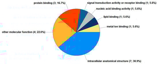For the molecular functions annotation, LPC 16:0 altered the expression of proteins that are involved in the intracellular anatomic structure (A0A024R755, P51571, P19623, B4E2C1, Q9BQQ5, Q7LL7L0, A0A3B3ITE9) and signal transduction or binding of receptors, proteins (P60033, P19623, Q7L7L0), nucleic acids (Q7L7L0), lipids (P60033), or metal ions (A0A024R755) (Figure 4).