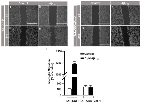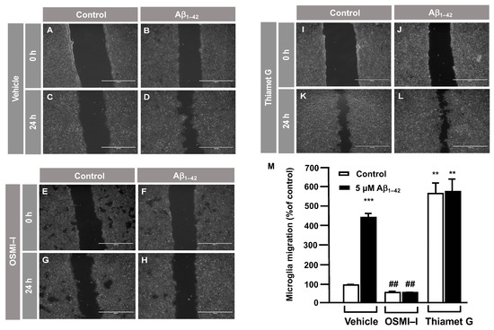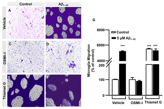 3.2. O-GlcNAc Homeostasis Controls Aβ1–42-Induced Microglial Migration