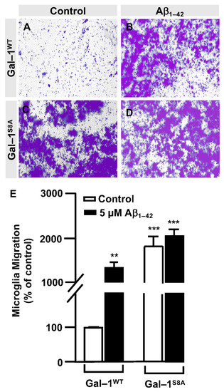 Amyloid β1–42 Oligomers Induce Galectin–1S8 O–GlcNAcylation Leading to Microglia Migration