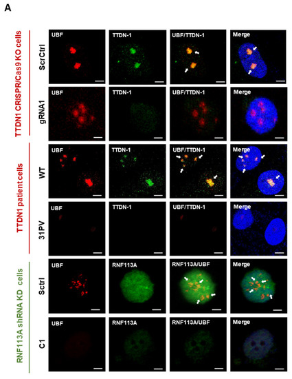 3.2. Reduced TTDN1 and RNF113A Impact on the RNA Polymerase I Transcription Factor UBF