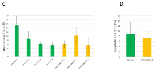 Vemurafenib, by the commercial name Zelboraf (Roche, Basel, Switzerland) pills were pulverized with a grinder and dissolved in sterile water to reach concentration of 10 mg/mL. Oligonucleotide primers were obtained from Sigma-Aldrich (Merck KgaA, Darmstadt, Germany).
