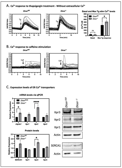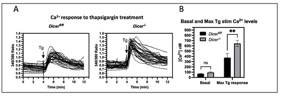 3.2. Dicer−/− ESCs Display Increased Cytoplasmic Ca2+ Levels upon Thapsigargin Treatment