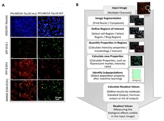 The analysis workflow was optimized and used to quantify outcome signals of PFlare5A-Tau10 mut compared to the PFlare5A-Tau10 WT fluorescent reporter plasmid.
