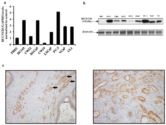 3.1. DCUN1D1 Is Upregulated in Human Prostate Cancer Cell Lines and Primary Cancer Tissue Samples