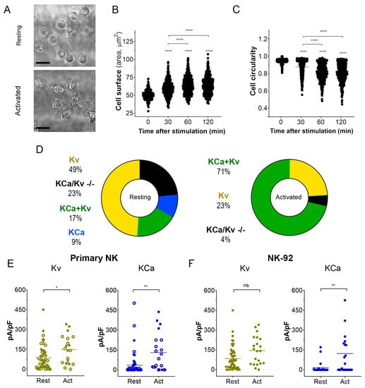 3.1.2. Activation of NK Cells Changes Cell Morphology and Strongly Increases the Percentage of Cells Expressing Large KCa3.1 Current