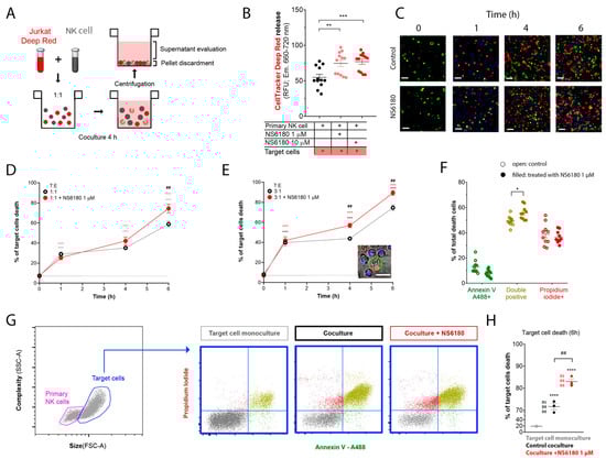- Backes, C.S.; Friedmann, K.S.; Mang, S.; Knörck, A.; Hoth, M.; Kummerow, C. Natural killer cells induce distinct modes of cancer cell death: Discrimination, quantification, and modulation of apoptosis, necrosis, and mixed forms. J. Biol. Chem. 2018, 293, 16348–16363. [Google Scholar] [CrossRef] [PubMed]