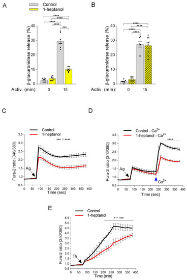3.4. 1-Heptanol Inhibits β-Glucuronidase Release and Calcium Mobilization