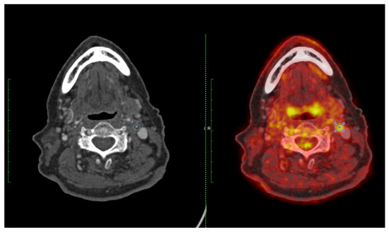 - Vöö, S.; Kwee, R.M.; Sluimer, J.C.; Schreuder, F.H.B.M.; Wierts, R.; Bauwens, M.; Heeneman, S.; Cleutjens, J.P.M.; van Oostenbrugge, R.J.; Daemen, J.-W.H.; et al. Imaging Intraplaque Inflammation in Carotid Atherosclerosis With 18F-Fluorocholine Positron Emission Tomography–Computed Tomography: Prospective Study on Vulnerable Atheroma With Immunohistochemical Validation. Circ. Cardiovasc. Imaging 2016, 9, e004467. [Google Scholar] [CrossRef]