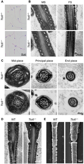 3.7. Spermatozoa from Ttc6−/− Mice Exhibit Abnormal Morphology