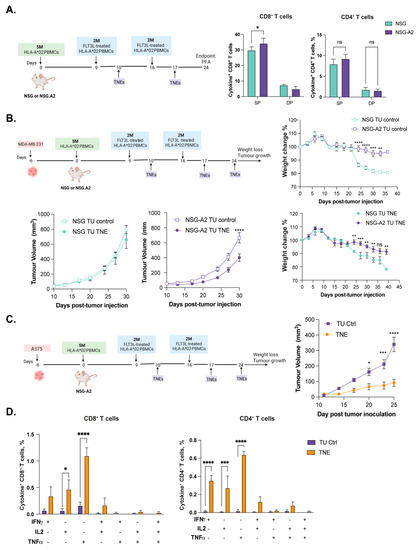 3.4. Direct Comparison between PBMC-hu-NSG and PBMC-hu-NSG-A2 Models Supports the Use of HLA Matching Systems to Test Cancer Vaccines