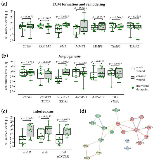 3.2. Patients with Chronic Wounds Show Altered ANGPT:TIE2 Ratios in the Serum and Increased Levels of Matrix Metalloproteinase 9 in the Wound Tissue