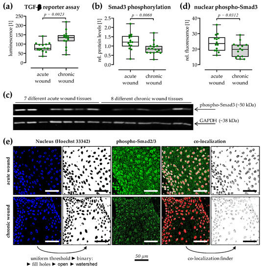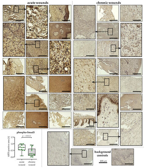 - Liarte, S.; Bernabé-García, Á.; Nicolás, F.J. Role of TGF-β in Skin Chronic Wounds: A Keratinocyte Perspective. Cells 2020, 9, 306. [Google Scholar] [CrossRef] [PubMed]