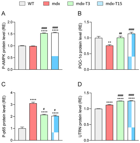 - Al-Rewashdy, H.; Ljubicic, V.; Lin, W.; Renaud, J.M.; Jasmin, B.J. Utrophin A is essential in mediating the functional adaptations of mdx mouse muscle following chronic AMPK activation. Hum. Mol. Genet. 2015, 24, 1243–1255. [Google Scholar] [CrossRef]