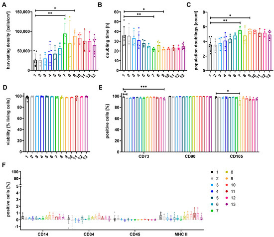 - Dominici, M.; Le Blanc, K.; Mueller, I.; Slaper-Cortenbach, I.; Marini, F.; Krause, D.; Deans, R.; Keating, A.; Prockop, D.; Horwitz, E. Minimal Criteria for Defining Multipotent Mesenchymal Stromal Cells. The International Society for Cellular Therapy Position Statement. Cytotherapy 2006, 8, 315–317. [Google Scholar] [CrossRef] [PubMed]